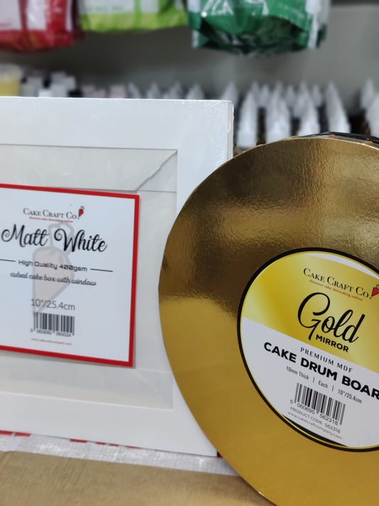 GLOSSY Masonite (5mm-MDF) Cake Board And White Tall Cake Box -COMBO SET--CHOOSE A SIZE AND COLOUR