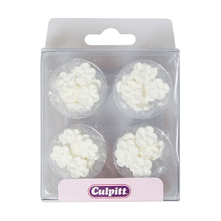 These delightful White Mini Blossoms are individually hand made from sugar paste and piped using royal icing. They make great cupcake decorations, or to decorate a full sized cake